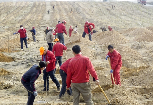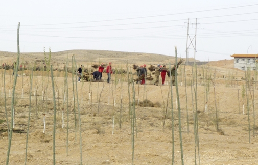 今年公司早在2月底就提前著手,專門行文向永寧縣政府申請樹苗,截止4月20日,通過多方協(xié)調(diào),前后三次從永寧縣林業(yè)局無償申領(lǐng)棗樹樹苗3100棵、沙棗樹苗5400棵、楊樹樹苗1065棵、刺槐樹苗3052棵,共計12627棵,其中補種去年樹苗2465棵。